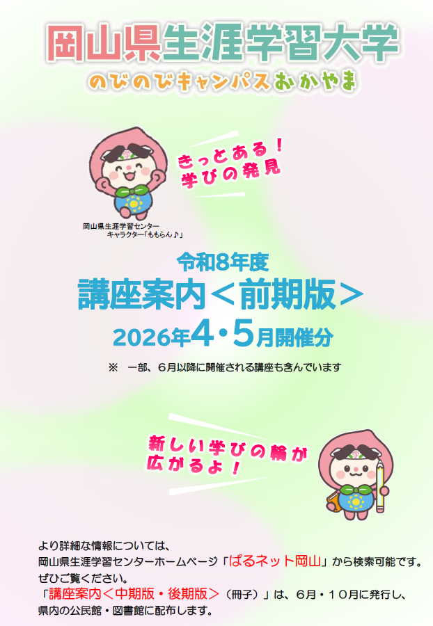 岡山県生涯学習大学講座案内<令和8年度 前期版>を作成しました。